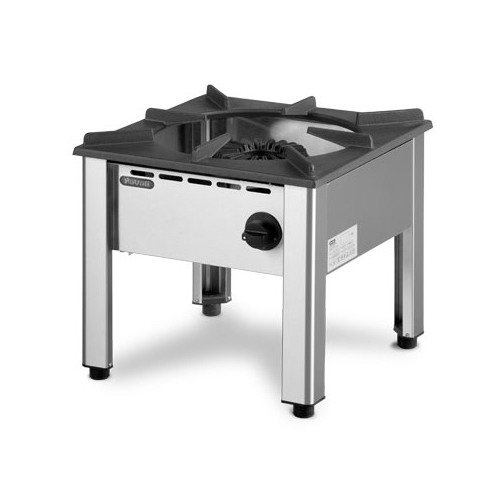 Gas Stock Pot with Powerful 11.5 kW Gas Burner. Can be used as Wok Range by mounting an adapter on the cast iron griddle. Designed to be a portable appliance inside an Oriental Kitchen. Top panel is constructed from a complete one piece of cast iron pot holder. Able to be used as wok ranges by attaching wok ring adaptor. The outer front casing is made from thick stainless steel to ensure longer lifetime of the appliance.
