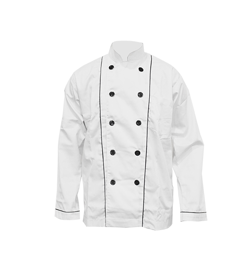 Accomplished chefs are worthy of a distinguished uniform. Black piping and 10 buttons make this coat a great choice for a polished look.
