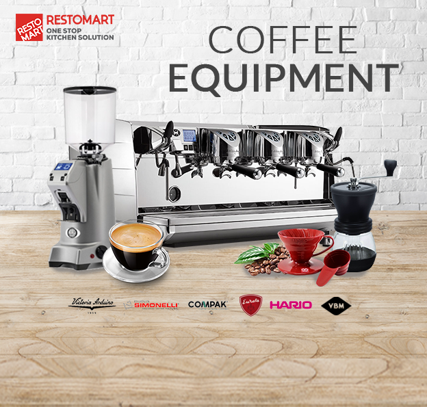 Find the right coffee shop equipment from coffee machine, grinder and more for your business only at Restomart - One Stop Kitchen Solution